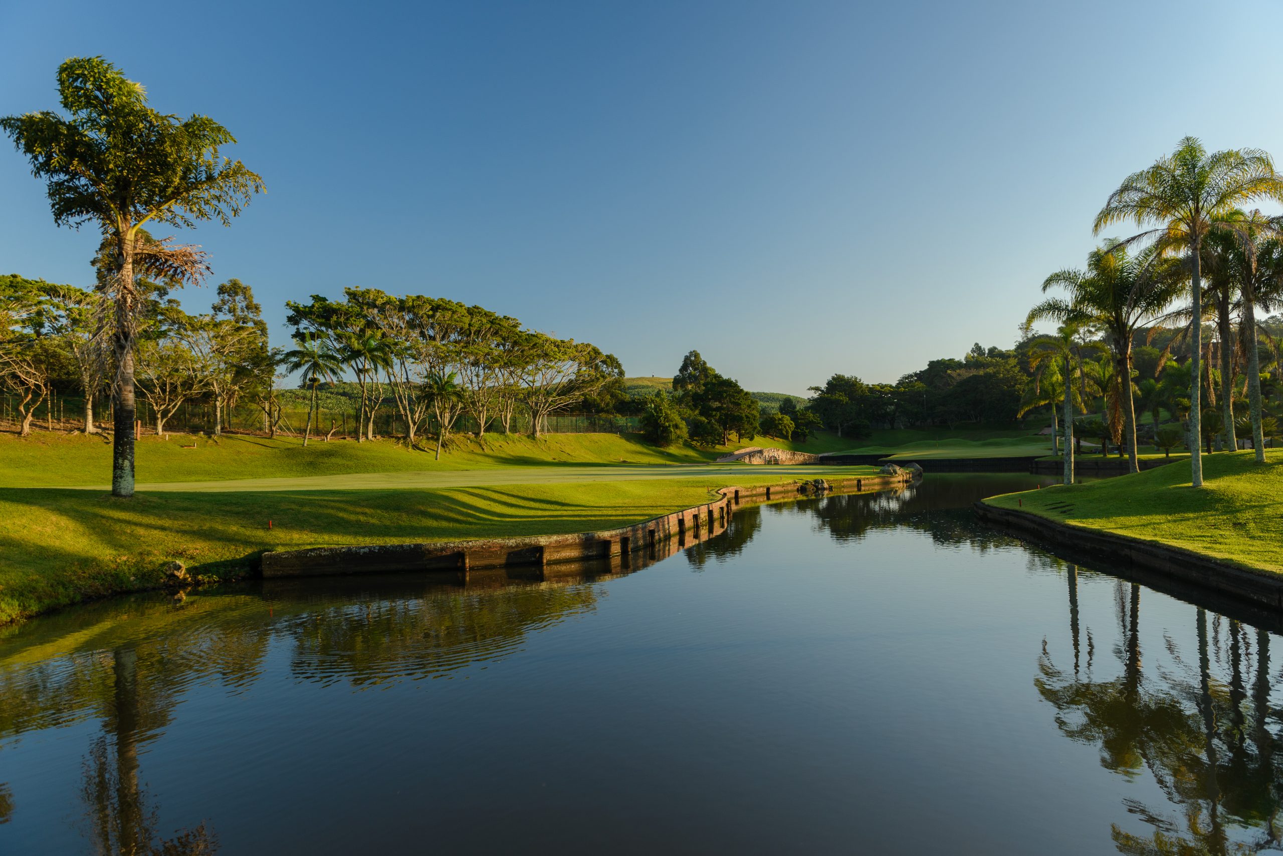 The course itself, designed by Peter Matkovich and Dale Hayes, is sculptured around one of the last remaining wetland forests on the South Coast of Kwa-Zulu Natal. The San Lameer golf course was designed to avoid areas of sensitive vegetation and utilizes the indigenous plants and shrubs in the natural features of the course. The club house has just been freshly renovated and is recognized as one of the most attractive in South Africa with spectacular views from the spacious terraces surrounding it making the estate and course an excellent destination providing you with world class Golf estate accommodation.